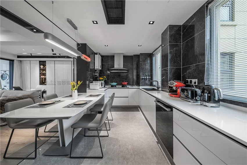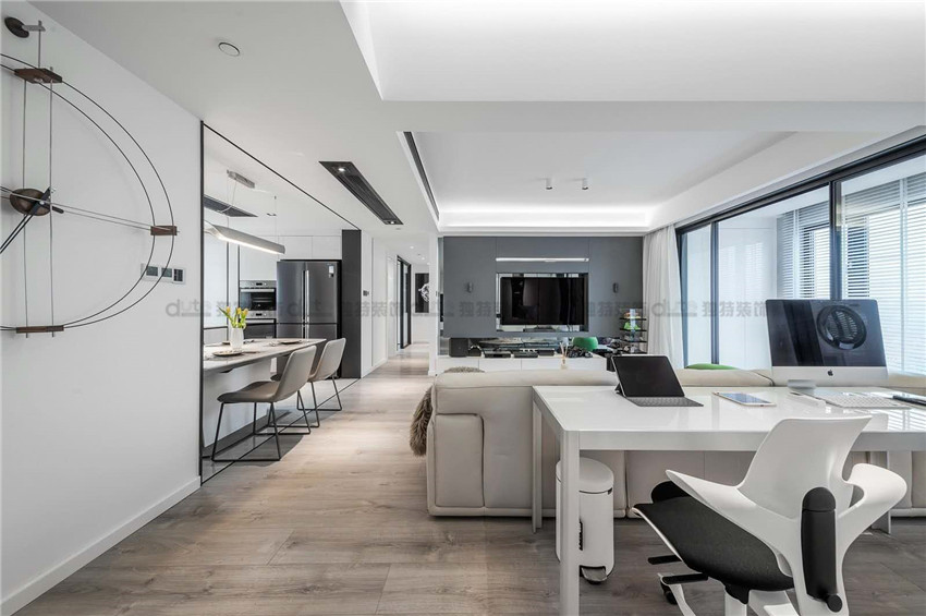 案例說明:本案采用后現(xiàn)代的風格設計,藍色布藝的融入跟家具的搭配,讓整個效果更加明亮。同時賦有時尚感與實用性。